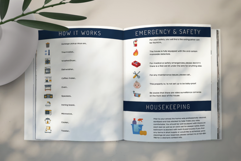 - Create a Guest Guide – a binder with instructions for the whole property